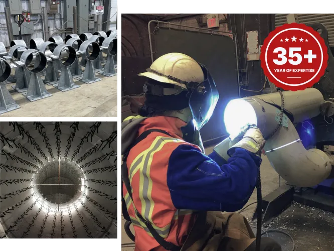 Fabrication and repair of refractory-lined pipe, with in-house refractory lining and cure/bake-out services for high-temperature, high-wear duty.